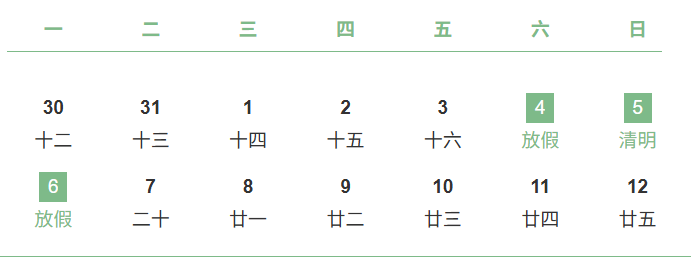 放假时间2026年4月4日(星期六)至4月6日(星期一)放假,共3天。‌